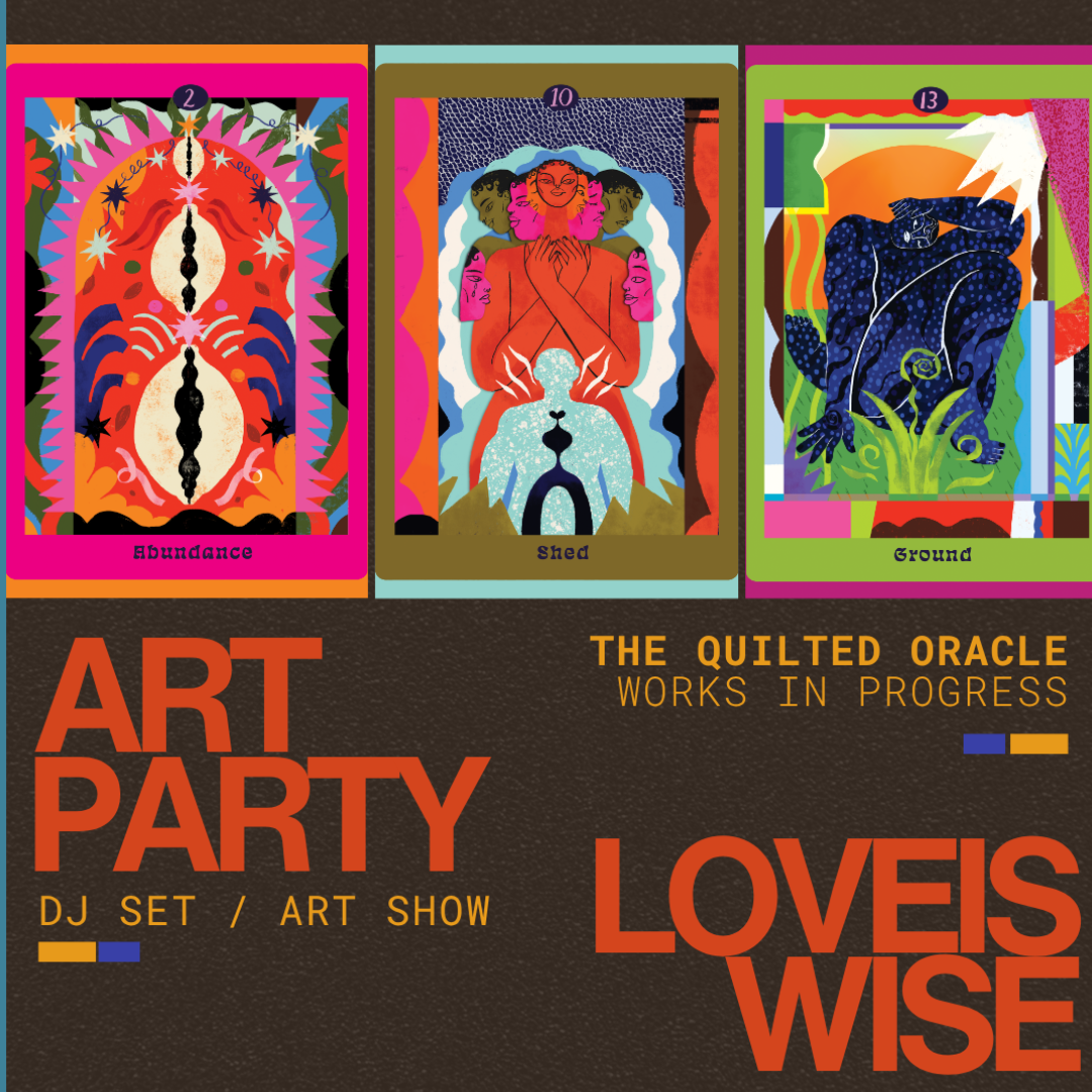 Meadow Artist-in-Residence LOVEIS WISE will be showing new works in progress from their Quilted Oracle series. Live DJ set. Free!