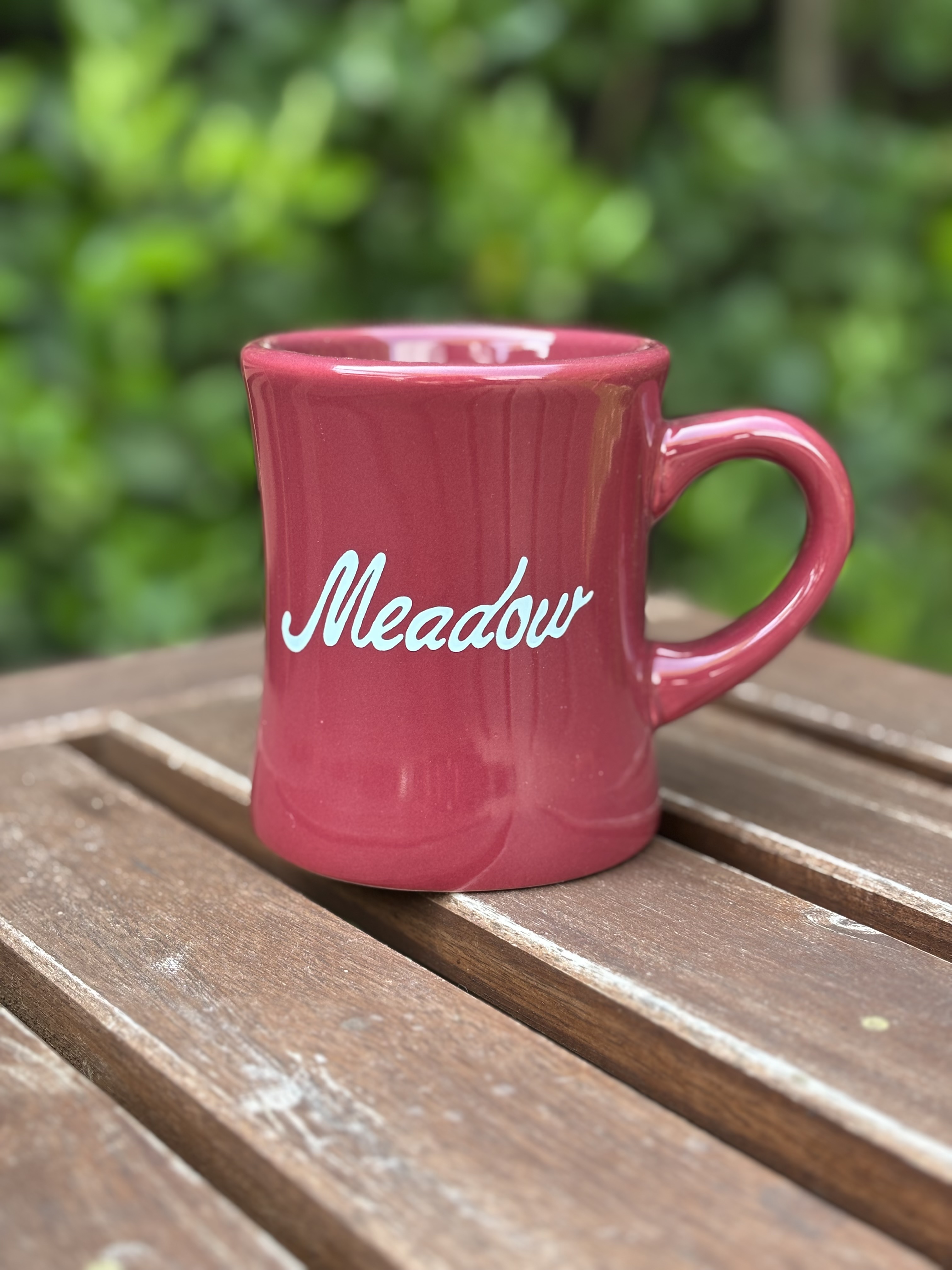 Let this mug fuel your productivity and creative genius! Show your love for Meadow with this beautiful burgundy diner mug!